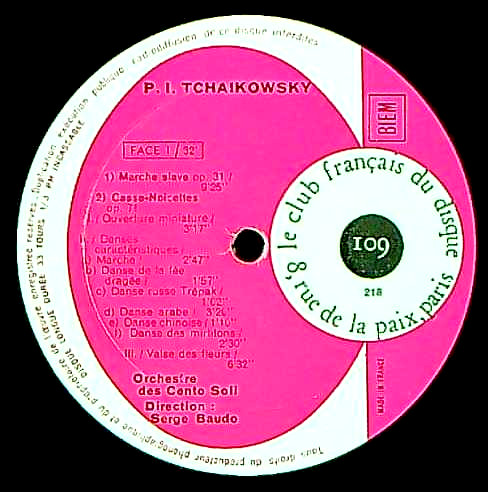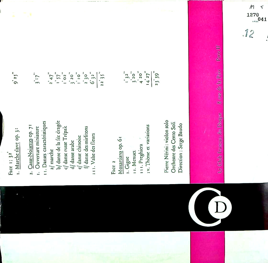 商品コード:1270-041[Le Club Français Du Disque] S.ボド指揮チェント・ソリo. P.ネリニ(vn) / チャイコフスキー:スラブ行進曲Op.31, 組曲「くるみ割り人形」Op.71, モーツァルティアーナOp.61
