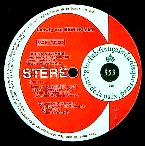 商品コード:1270-037b[Le Club Français Du Disque] G.ヴァント指揮ケルン・ギュルツェニヒo.cho. L.キルシュシュタイン(s) J.ドルーベ(a) P.シュライアー(t) G.モルバッハ(bs) / ベートーヴェン:ミサ・ソレムニス(荘厳ミサ曲)
