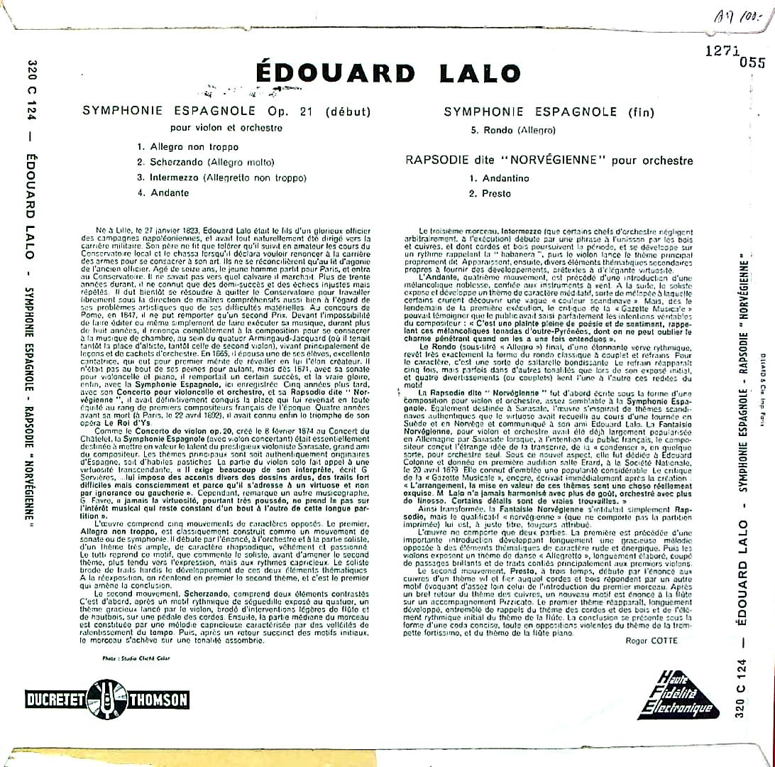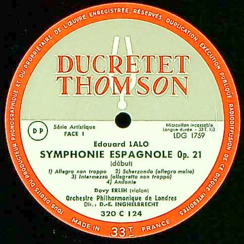 商品コード:1271-055[Ducretet Thomson] D.エルリ(vn) D.E.アンゲルブレシュト指揮ロンドンpo. / ラロ:スペイン交響曲, ノルウェー狂詩曲