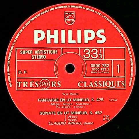 商品コード:1271-025[PHILIPS] C.アラウ(pf) / モーツァルト:幻想曲K.475, 397, Pfソナタ14番K.457, ロンドK.511