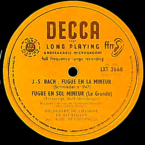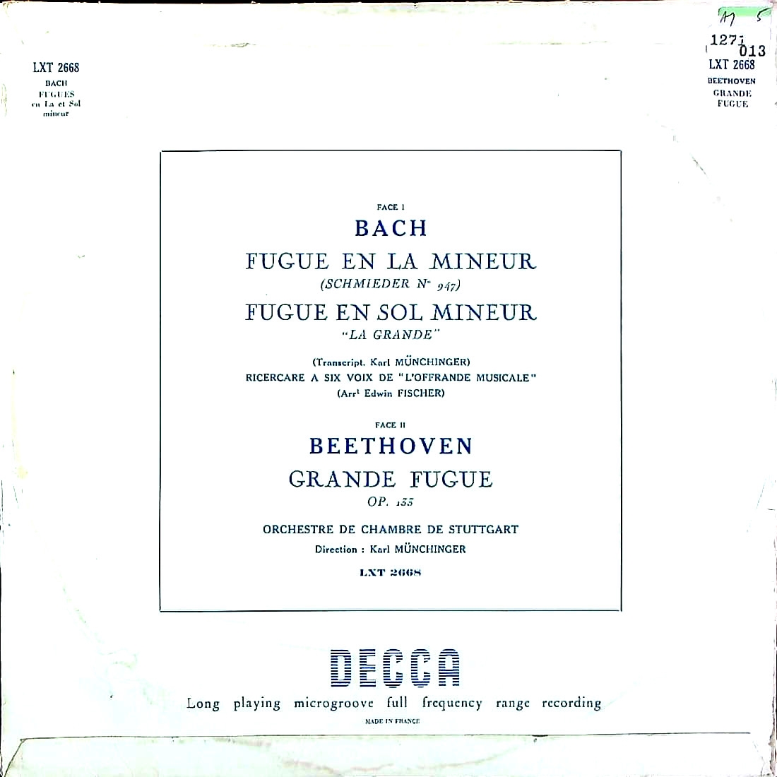 商品コード:1271-013p[DECCA] K.ミュンヒンガー指揮シュトゥットガルト室内o. / バッハ:フーガB.947, B.542(ミュンヒンガー編), 6声のリチェルカーレ(E.フィッシャー編), ベートーヴェン:大フーガOp.133(管弦楽編)