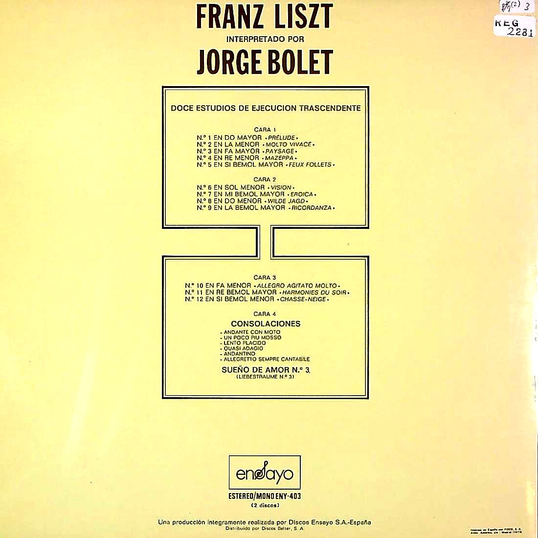 商品コード:REG-2281[スペインENSAYO] J.ボレット(pf) / リスト:超絶技巧練習曲集(全12曲), コンソラシヨン, 愛の夢3番