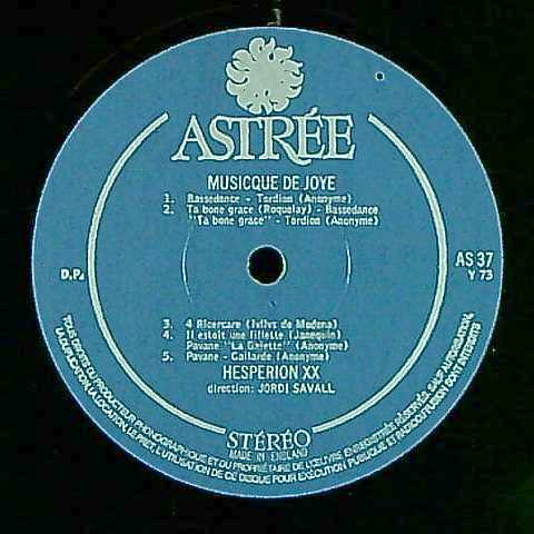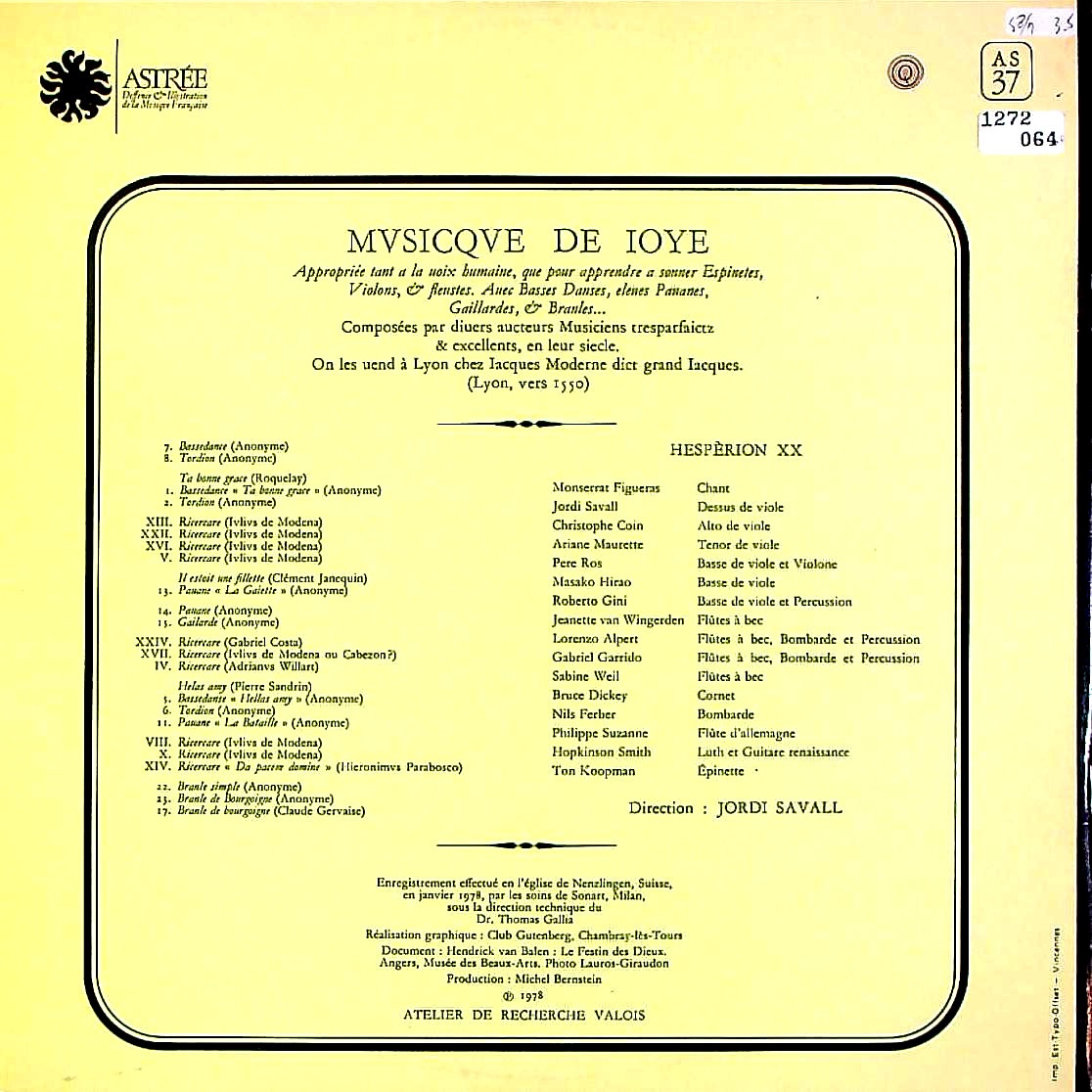 商品コード:1272-064[ASTRÉE] J.サヴァール指揮エスペリオンXX / 歓びの音楽(ジャック・モデルヌ刊) / リチェルカーレ, バスダンス, パヴァーヌ, 他