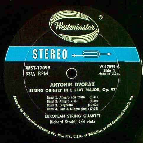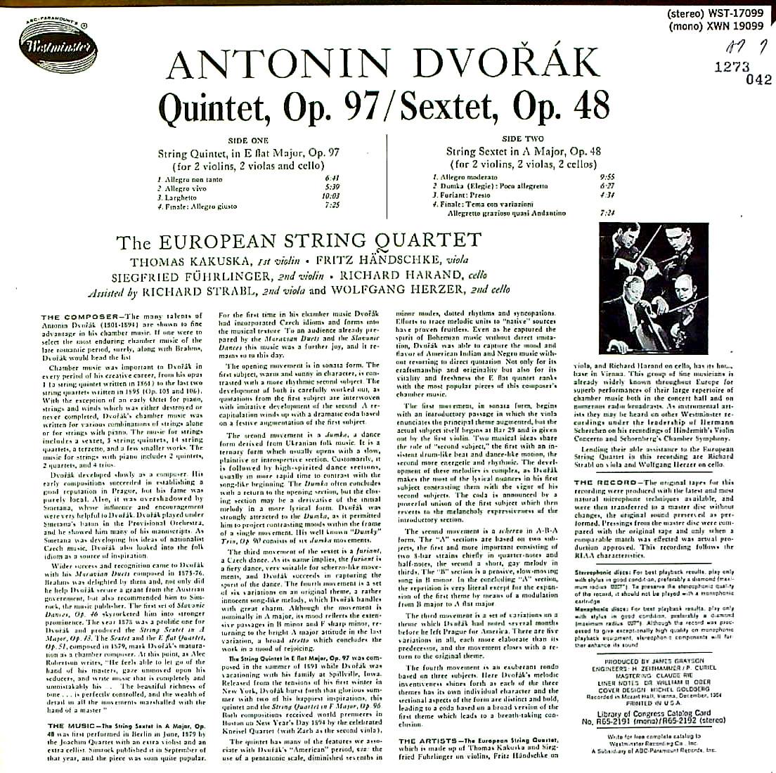 商品コード:1273-042[WESTMINSTER] ヨーロッパQt. W.ヘルツァー(vc) R.シュトラブル(Va) / ドヴォルザーク:弦楽五重奏曲3番Op.97, 弦楽六重奏曲Op.48