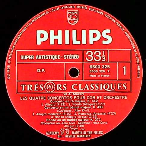 商品コード:1273-018[PHILIPS] A.シヴィル(hr) N.マリナー指揮アカデミー室内o. / モーツァルト:Hr協奏曲集(全4曲)+ロンド