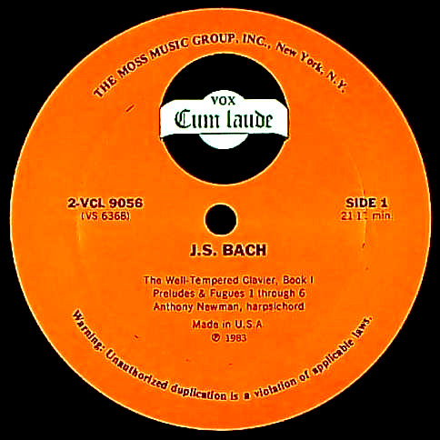 商品コード:1273-008[VOX CUM LAUDE] A.ニューマン(cemb) / バッハ:平均律クラヴィア曲集第1巻(全24曲)