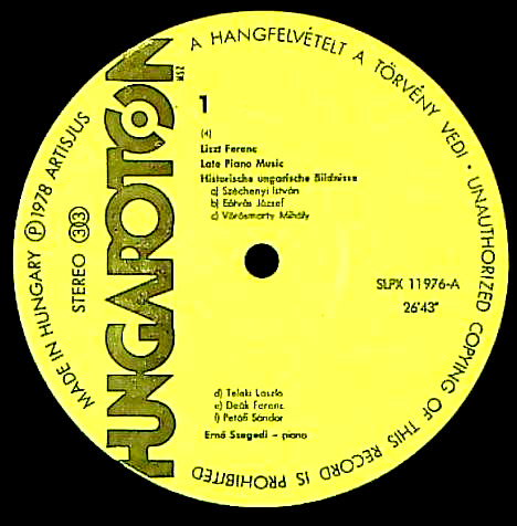 商品コード:REG-2330[洪HUNGAROTON] E.セゲディ(pf) / 「リスト・後期ピアノ作品集」/ハンガリーの歴史的肖像R.112(全曲) 他 (全15曲)