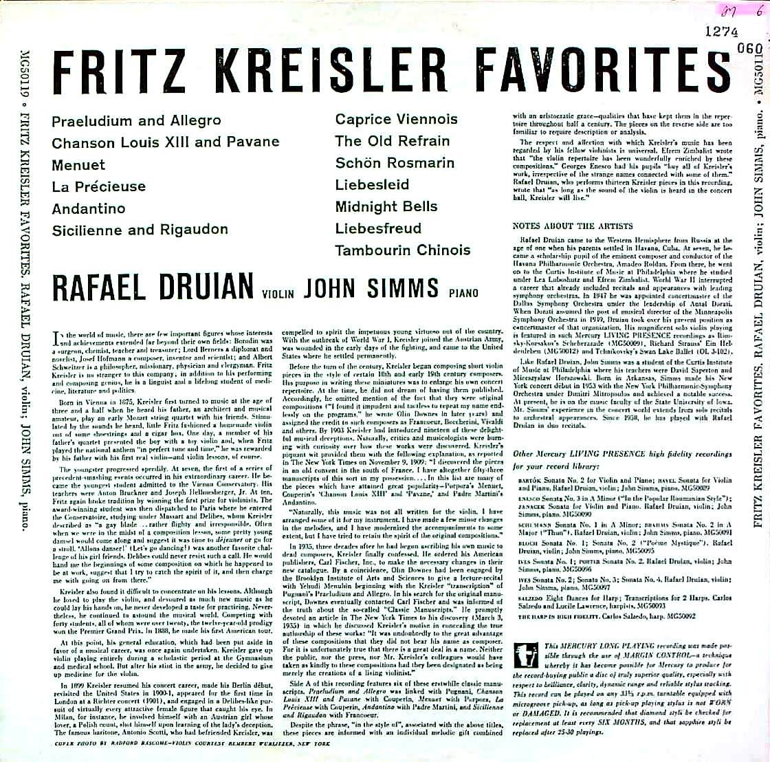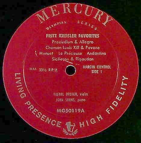 商品コード:1274-060t[MERCURY] R.ドルイアン(vn) J.シムス(pf) / クライスラー:小品集/ウィーン奇想曲, 美しきロスマリン, 愛の喜び, 愛の悲しみ 他