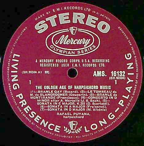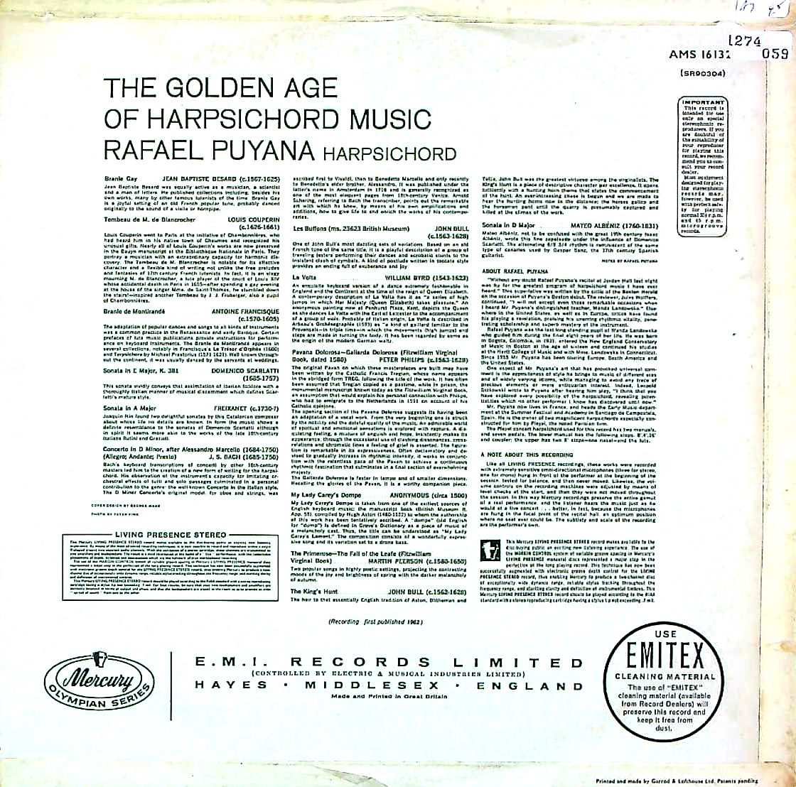 商品コード:1274-059[MERCURY] R.プヤーナ(cemb) / Cemb音楽の黄金時代/L.クープラン, バッハ, ブル, バード, フィリップス, スカルラッティ, 他全15曲