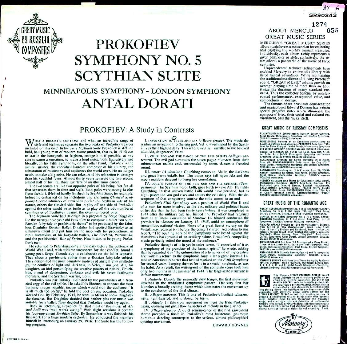 商品コード:1274-058t[MERCURY] A.ドラティ指揮ミネアポリスso.(交響曲), ロンドンso.(組曲) / プロコフィエフ:交響曲5番Op.100, スキタイ組曲「アラとロリー」Op.20(全4曲)