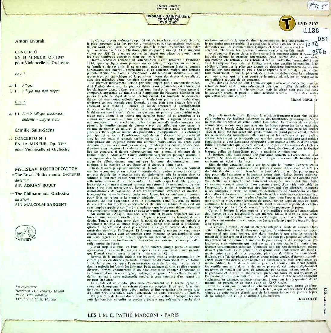 商品コード:1274-056b[La Voix De Son Maître] M.ロストロポーヴィチ(vc) A.ボールト指揮(ドヴォルザーク), M.サージェント指揮(サン・サーンス) / ドヴォルザーク:Vc協奏曲, サン・サーンス:Vc協奏曲1番