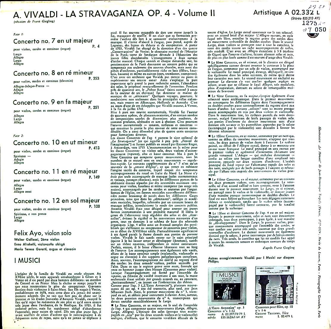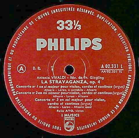 商品コード:1275-050[PHILIPS] イ・ムジチ合奏団 F.アーヨ, Wガロッツィ(vn) E.アルトベッリ(vc) M.T.ガラッティ(org) / ヴィヴァルディ:Vn協奏曲集「ラ・ストラヴァガンツァ」Op.4(全12曲)