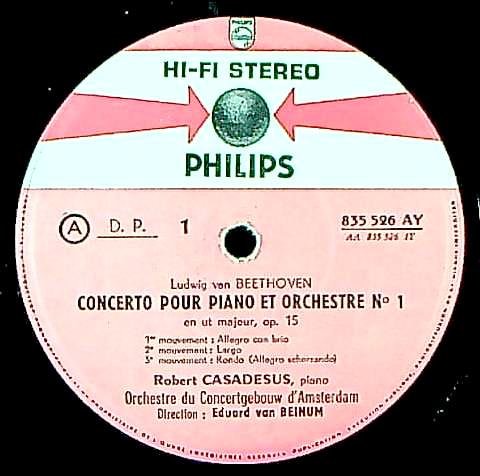 商品コード:1275-047[PHILIPS] R.カサドシュ(pf) E.v.ベイヌム指揮コンセルトヘボウo. / ベートーヴェン:Pf協奏曲1番Op.15, Pf協奏曲4番Op.58