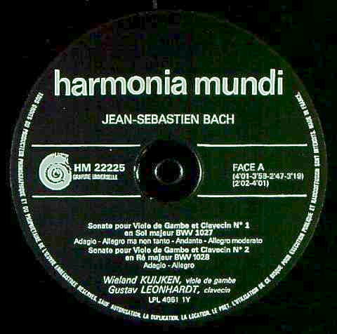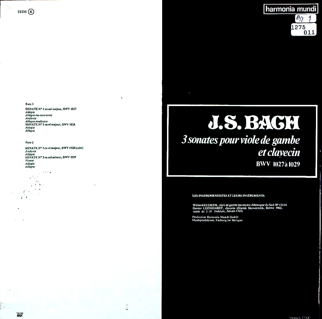 商品コード:1275-011[Harmonia Mundi] W.クイケン(gamb) G.レオンハルト(cemb) / バッハ:GambソナタB.1027~9(全3曲)