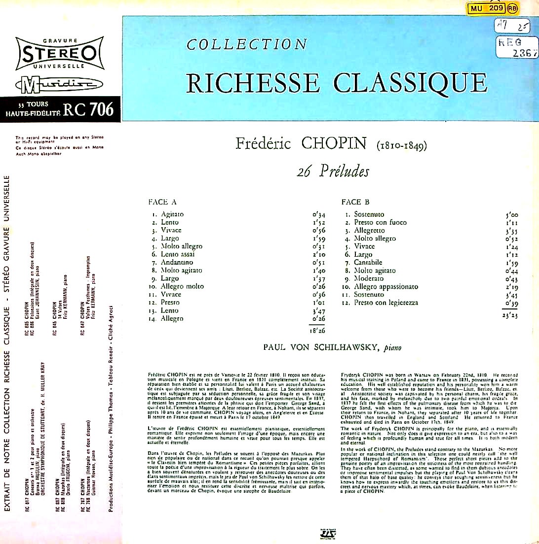 商品コード:REG-2367[仏MUSIDISC] P.v.シルハフスキー(pf) / ショパン:「26の前奏曲」/24の前奏曲Op.28, 前奏曲Op.45, 前奏曲 変イ長調(遺作)