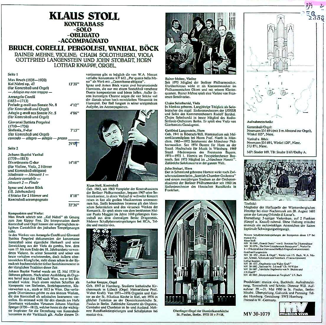 商品コード:REG-2358t[独MUSICA VIVA] K.シュトール(cb) K.ナップ(org) R.メーネ(vn) C.ソロトゥルスキー(va) 他/ ブルッフ:「コル・ニドライ」(Cb&Org版)Op.47, コレッリ, ペルゴレージ, ヴァンハル