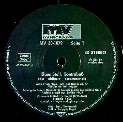 トピックス:黒/銀GG, コート, (P)1981, 80'年5月録音, レア!, オリジナル, ベルリンpo.首席コントラバスであるクラウス・シュトールのソロ録音