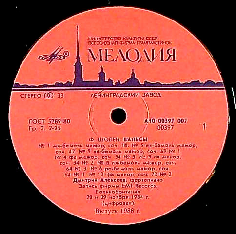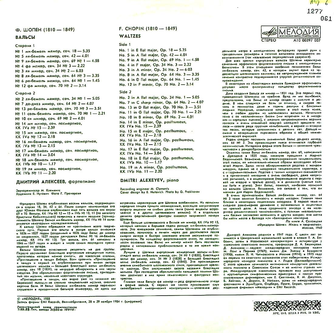 商品コード:1277-061n[MELODIYA] D.アレクセーエフ(pf) / ショパン:ワルツ全集(全19曲)