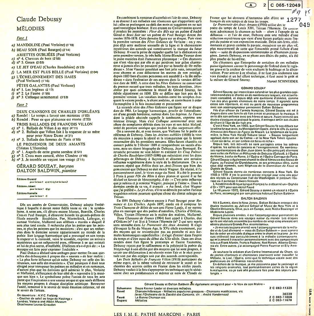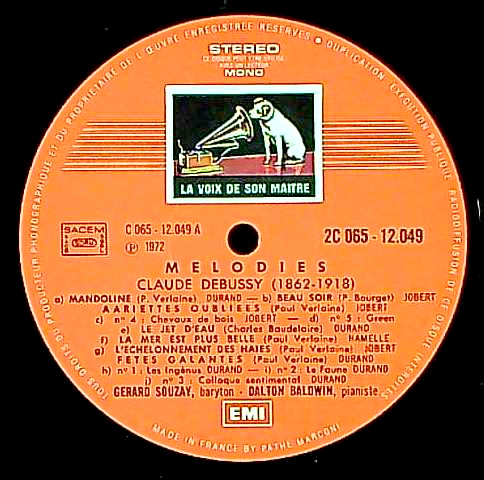 商品コード:1277-049[La Voix De Son Maître] G.スゼー(br) D.ボールドウィン(pf) / ドビュッシー:歌曲集 全18曲