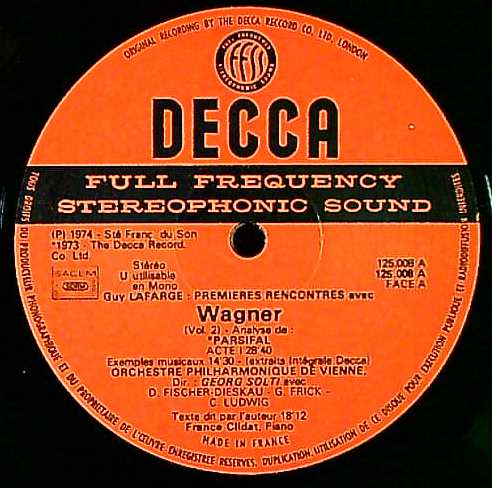 商品詳細:原題を直訳すると「ワーグナーとの最初の会合」となり、ワーグナー入門編と考えて良い。LP3枚でワーグナーに触れていただこうという企画物。「トリスタン」「パルジファル」「マイスタージンガー」の3曲からこの企画主Guy Lafurgeが厳選したハイライトを仏大DECCAプレスに納めたステレオ。プレスは'70年代、前2曲がショルティ、マイスタージンガーはクナの音源を使用。フランス人の為に博士のナレーションと曲とが交互にまた同期して進む一種の解説LPとなっている。