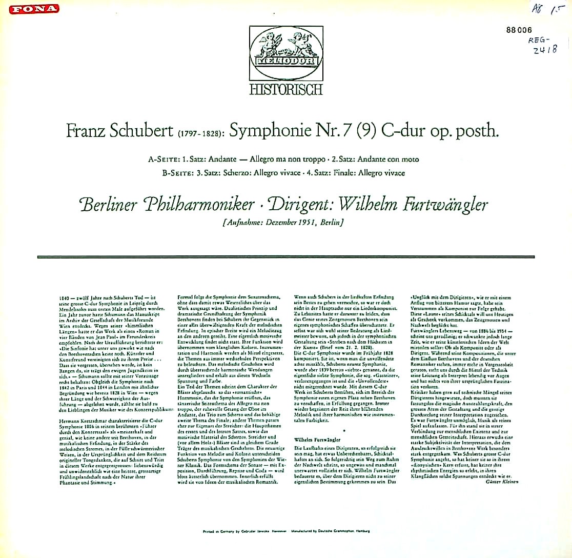 商品コード:REG-2418[独HELIODOR] W.フルトヴェングラー指揮ベルリンpo. / シューベルト:交響曲9番「グレイト」