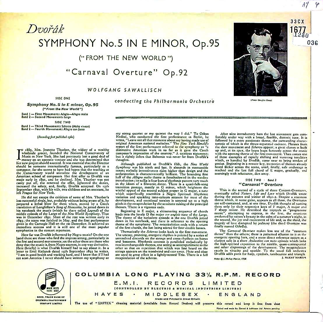 商品コード:1280-036[COLUMBIA] W.サヴァリッシュ指揮フィルハーモニアo. / ドヴォルザーク:交響曲9番Op.95「新世界より」, 序曲Op.92「謝肉祭」