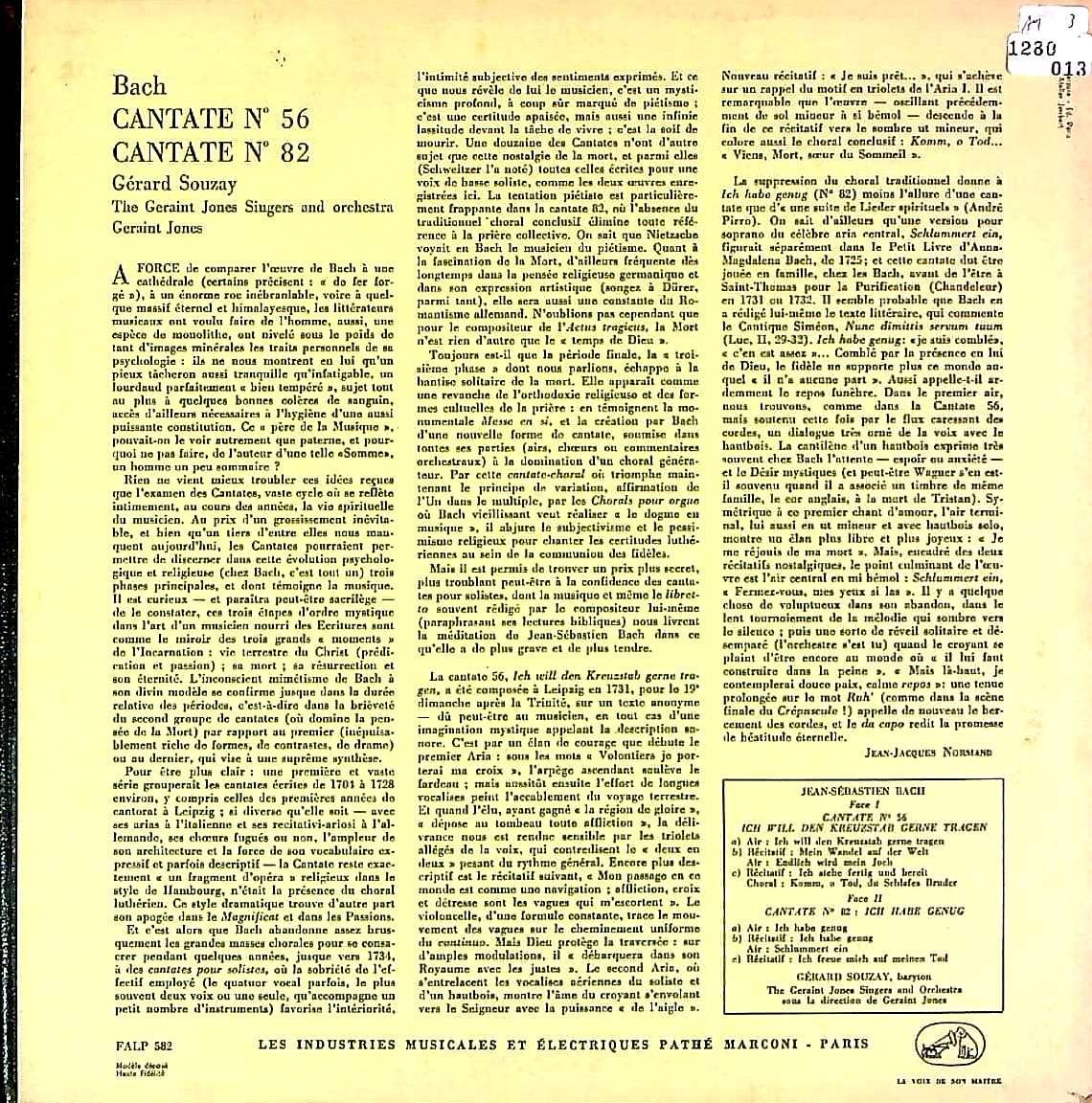 商品コード:1280-013[La Voix De Son Maître] G.スゼー(br) G.ジョーンズ指揮ゲラント・ジョーンズo. ゲラント・ジョーンズシンガーズcho. / バッハ:カンタータ56番, 82番