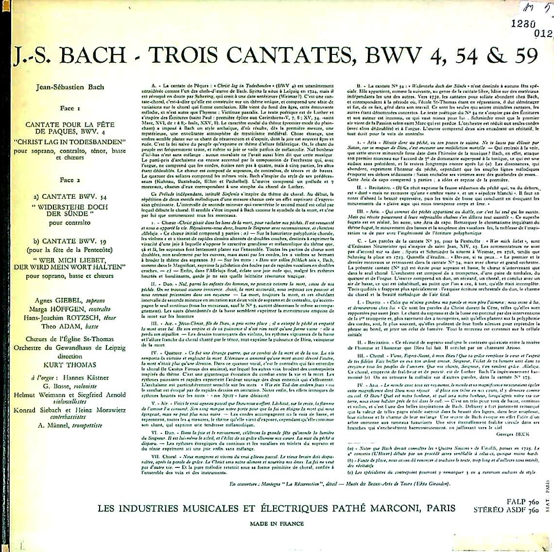 商品コード:1280-012[La Voix De Son Maître] K.トーマス指揮ゲヴァントハウスo. 聖トーマス教会cho. A.ギーベル(s) M.ヘフゲン(ca) 他/ バッハ:カンタータ4番, 54番, 59番