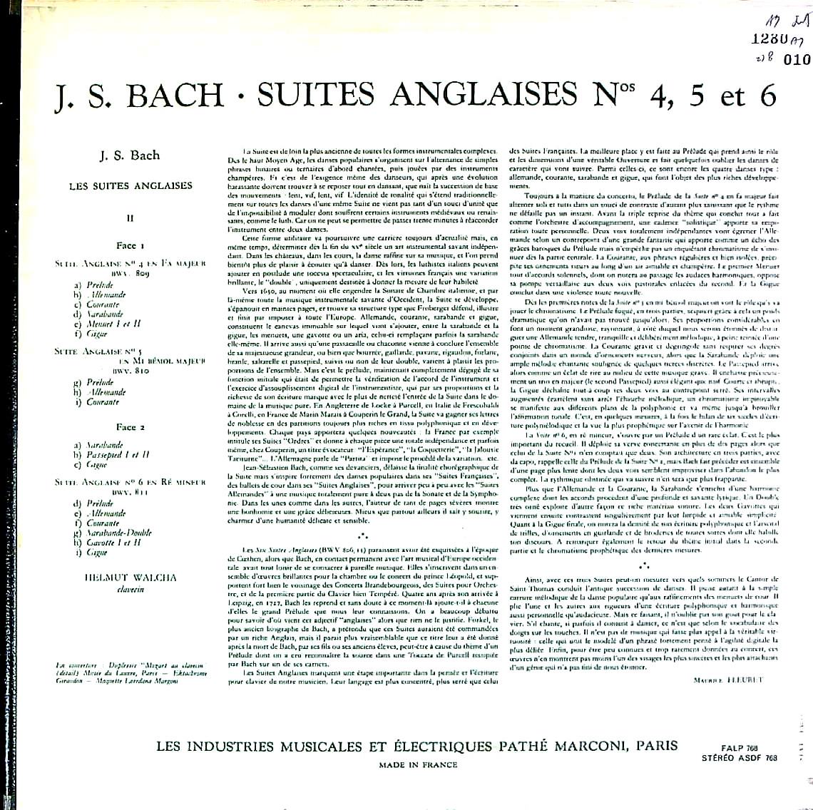 商品コード:1280-010[La Voix De Son Maître] H.ヴァルヒャ(cemb) / バッハ:イギリス組曲1~6番B.806~811