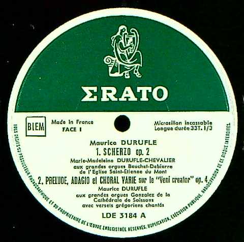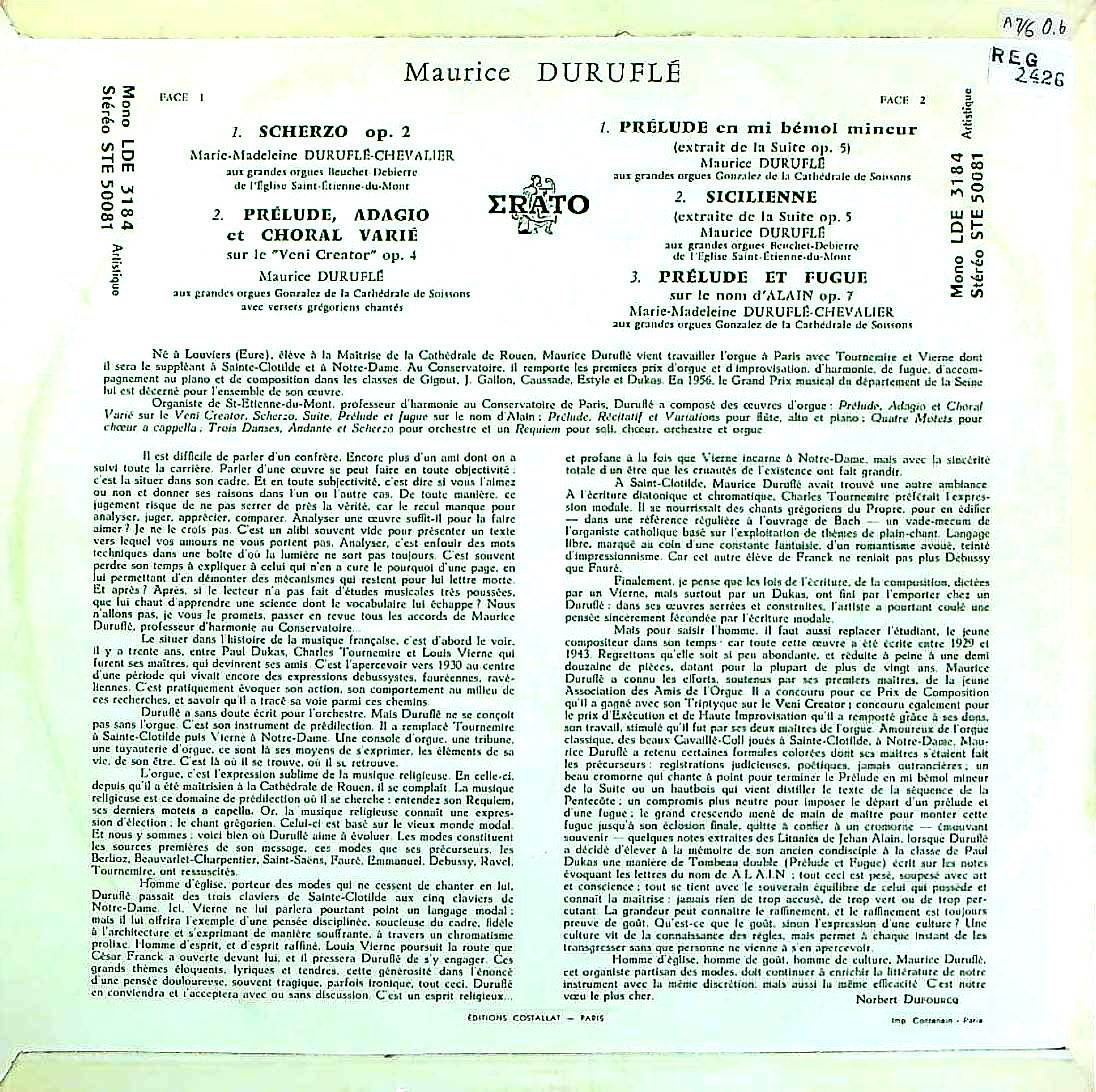 商品コード:REG-2426[仏ERATO] M.デュリュフレ, M.M.デュリュフレ(org) / オルガン作品集/M.デュリュフレ:オルガンのためのスケルツォOp.2 他