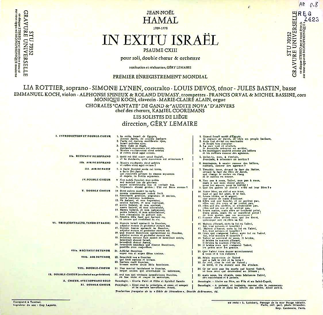 商品コード:REG-2423[仏ERATO] G.ラメール指揮リエージュ・ソロイスツ, L.ロッティエ(s) S.リナン(ca) L.ドヴォ(t) J.バスタン(bs) / アマル:詩篇「イスラエルはエジプトより」