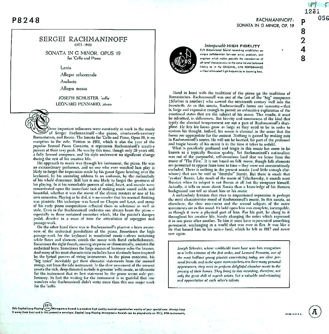 商品コード:1281-056p[CAPITOL] J.シュースター(vc) L.ペナーリオ(pf) / ラフマニノフ:VcソナタOp.19