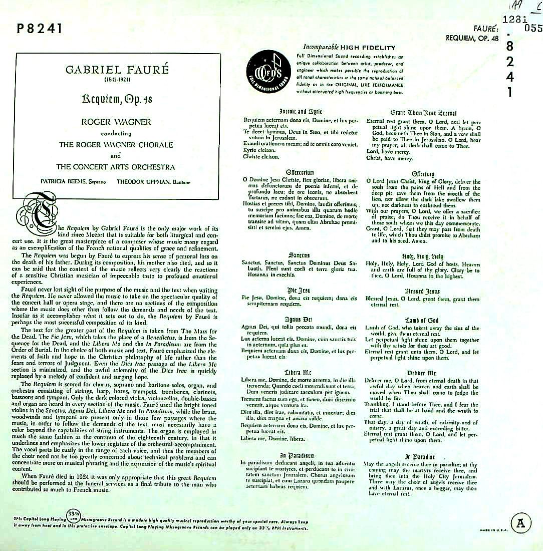商品コード:1281-055[CAPITOL] R.ワーグナー指揮コンサート・アーツo., ロジェ・ワーグナーcho. P.ビームス(s) T.アップマン(br) / フォーレ:レクイエムOp.48