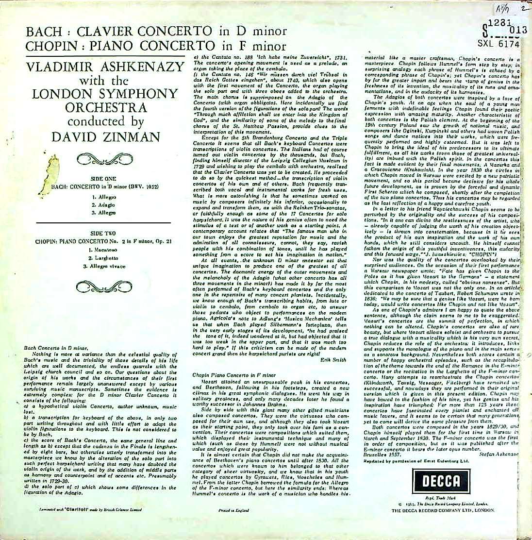 商品コード:1281-013[DECCA] V.アシュケナージ(pf) D.ジンマン指揮ロンドンso. / バッハ:Pf協奏曲1番B.1052, ショパン:Pf協奏曲2番Op.21