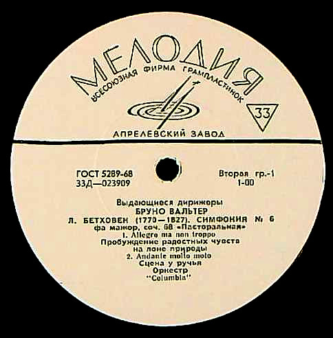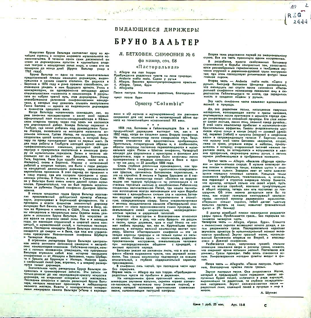 商品コード:REG-2444[露MELODIYA] B.ワルター指揮コロンビアso. / ベートーヴェン:交響曲6番「田園」Op.68