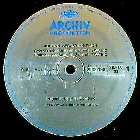 商品コード:1283-011[Archiv Produktion] H.ドレフュス(cemb) / バッハ:フランス組曲(全6曲)/B.812~817, カプリッチョB.992