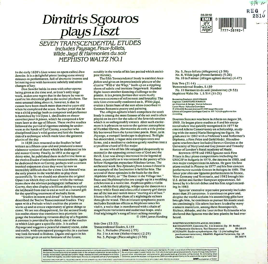 商品コード:REG-2510p[米ANGEL] D.スグロス(pf) / 「スグロス・プレイズ・リスト」/リスト:超絶技巧練習曲S.139~1, 2, 3, 5, 8, 10番 (7曲), メフィスト・ワルツ1番