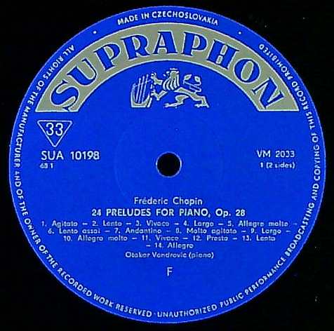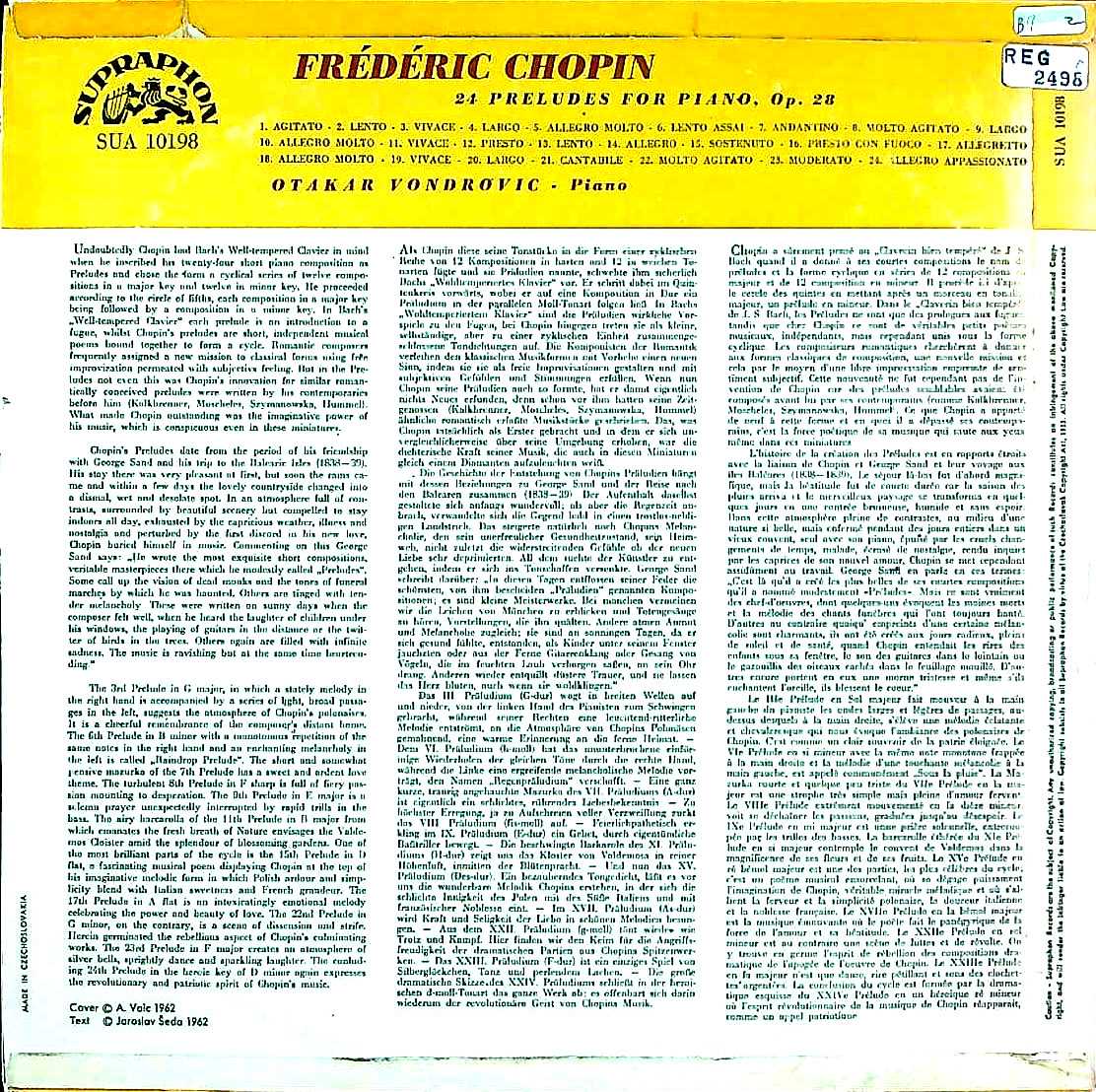 商品コード:REG-2498p[旧チェコ・スロバキアSUPRAPHON] O.ヴォンドロヴィチ(pf) / ショパン:24の前奏曲Op.28