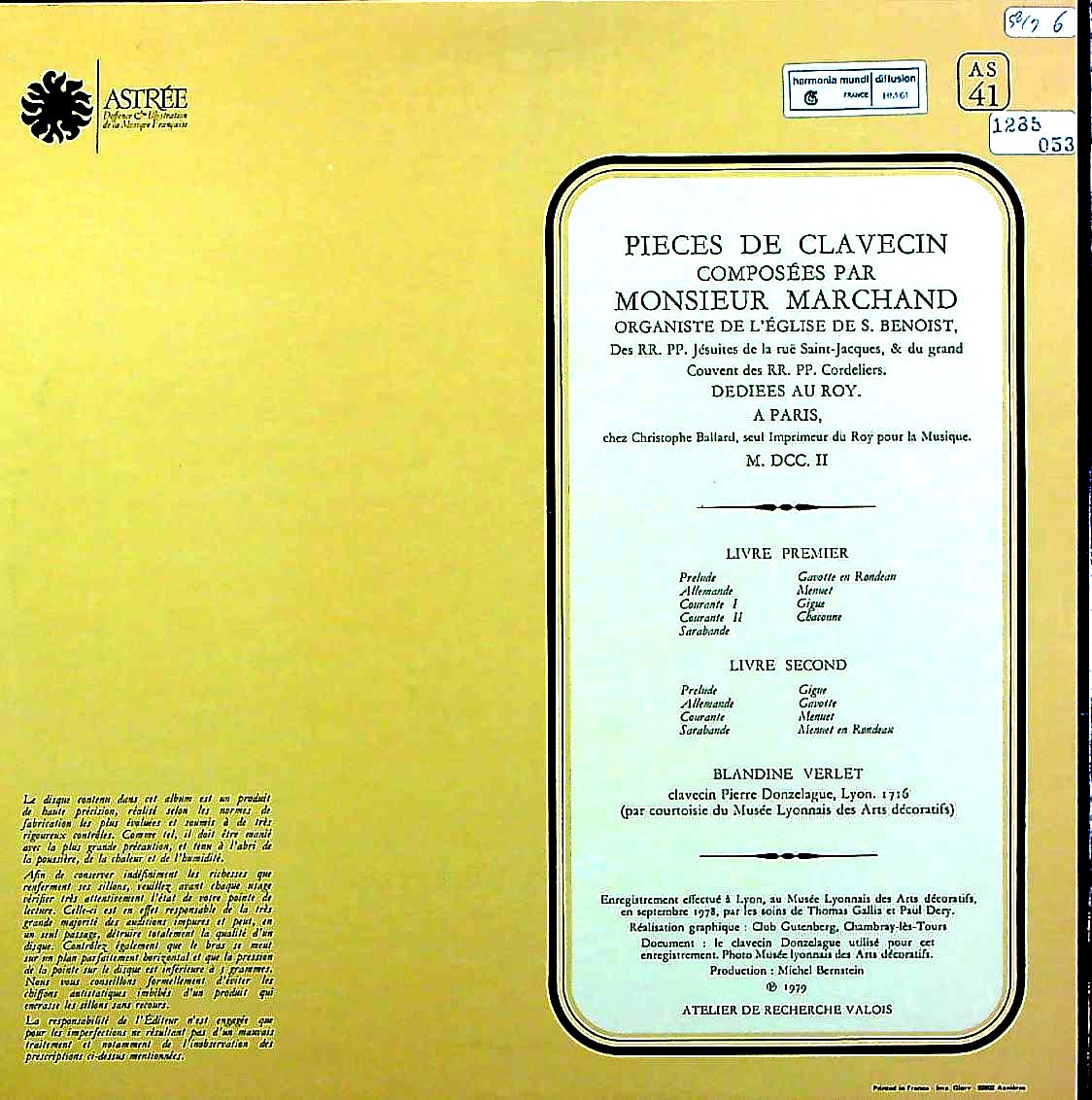 商品コード:1285-053[ASTRÉE] B.ヴェルレ(cemb) / ルイ・マルシャン:クラヴサン曲集第1巻, クラヴサン曲集第2巻