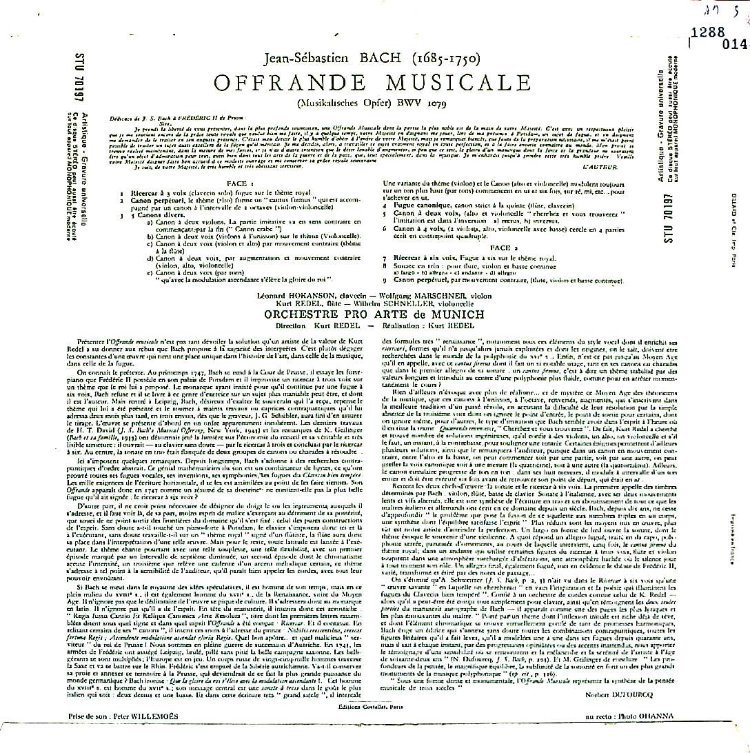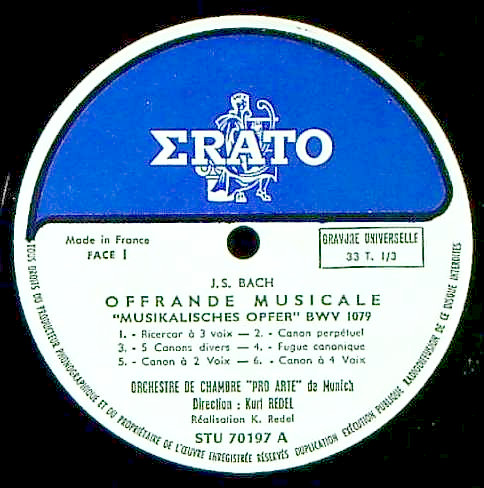 商品コード:1288-014[ERATO] K.レーデル指揮ミュンヘン・プロ・アルテo. W.マルシュナー(vn) L.ホカンソン(cemb)K.レーデル(fl)W.シュネラー(vc) / バッハ:音楽の捧げ物B.1079