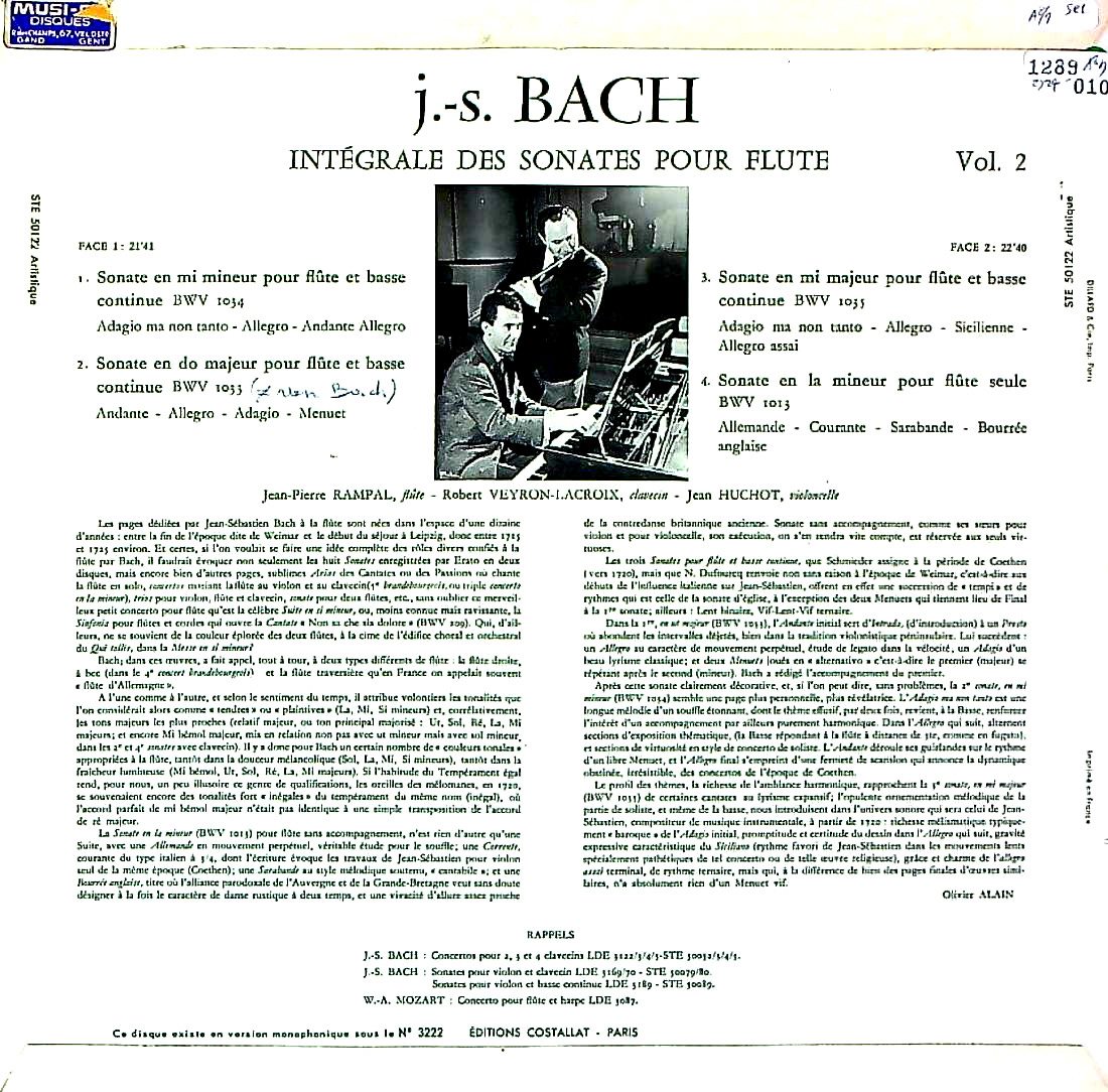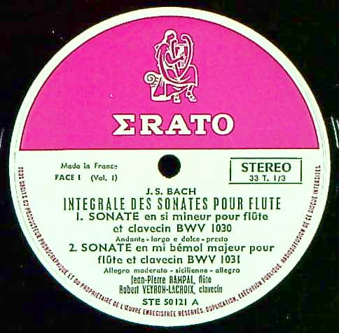 商品コード:1289-010[ERATO] J.P.ランパル(fl) R.ヴェイロン・ラクロワ(cemb) J.ユショ(vc) / バッハ:Flソナタ全集-1+2