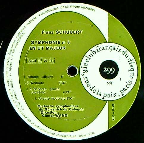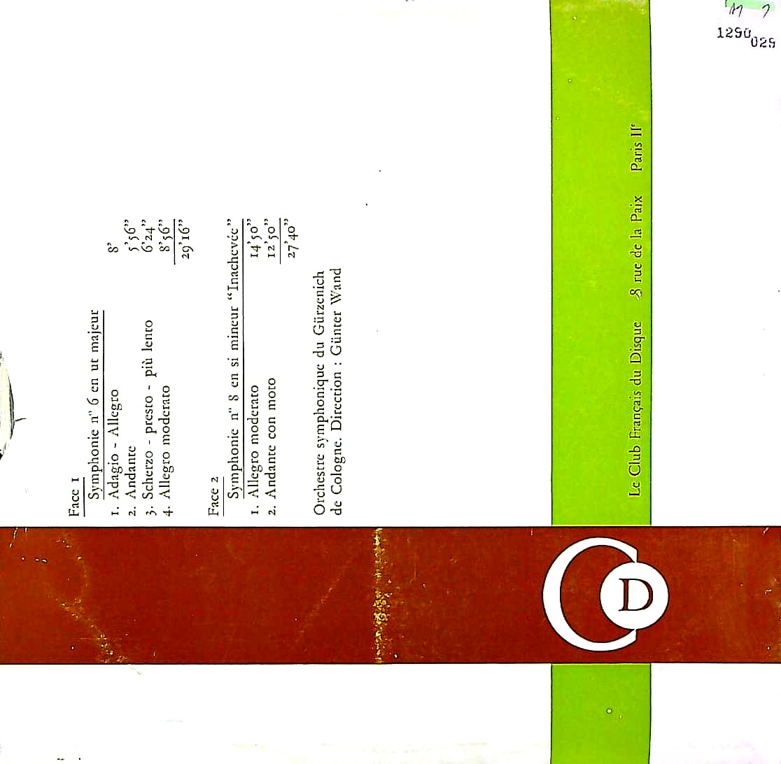 商品コード:1290-029p[Le Club Français Du Disque] G.ヴァント指揮ギュルツェニッヒso. / シューベルト:交響曲6番D 589, 交響曲8番「未完成」D.759