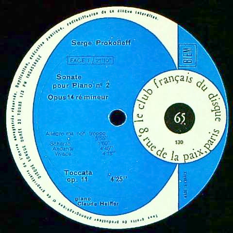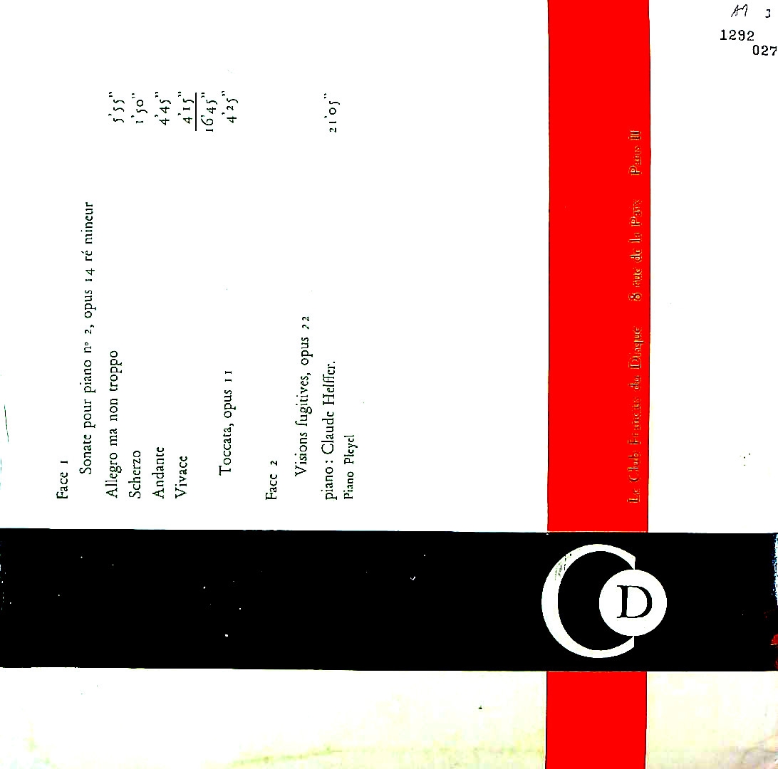 商品コード:1292-027p[Le Club Français Du Disque] C.エルフェ(pf) / プロコフィエフ:Pfソナタ2番Op.14, トッカータOp.11, つかの間の幻影Op.22