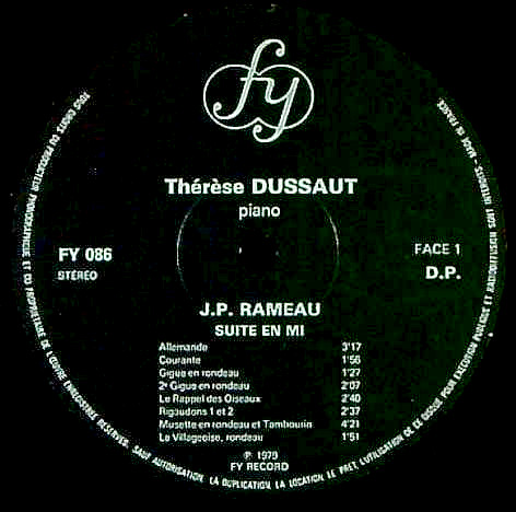 商品詳細:イヴォンヌ・ルフェビュール(1898- 1986)とともにこのFYレーベルには欠かせない美人女性ピアニスト、T.デュソー。ラモーを全5枚に入れていて、これはそのVol.2と思われる。チェンバロで演奏されることの多いラモー。これだけ多くの録音をピアノで行った人はほとんどいない。ラモーはフランス最大のバロック作曲家。オペラにも力を入れたが、クラヴサン曲集が一つの偉業と言える。A面がクラヴサン組曲集・第1番/第2組曲、B面がクラヴサン組曲集・第2番/第3組曲。実に優雅なピアノの表情だ。フランス人らしいピアニズム。M.メイエルの録音が偉大過ぎて挑戦するピアニストがなかなか現れなかった。T.デュソーは新しい感性で現代感覚も取り入れた軽快な演奏で違いを際立たせる。テレーズ・デュソー(1939-)はフランス・ヴェルサイユで生まれ、パリ音楽院でマルグリット・ロンとピエール・サンカンに、ドイツでロシアのピアニスト、ウラジミール・ホルボウスキーにピアノを学んだ。彼女はパリ国立高等音楽・舞踊学校、ドイツ、シュトゥットガルト州立大学芸術で賞を獲得している。1957年に彼女はピアノのARD国際音楽コンクールで一等賞を受賞した。卒業後、コンサート・ピアニストとして国際的なキャリアをスタートしシャルル・シェーヌのピアノ協奏曲やレオン・モラヴィエフのストローフィ、アンティストロペー、エポードなどの現代作品も演奏している。1987年から1995年まで、セヴェンヌ・フェスティバルの芸術監督を務めた。1988年から2000年の間、彼女は夏の大学で、マスタークラスを、米国、ロシア、ドイツ、ウクライナで教えた。彼女の生徒の中には、ピアニストのパトリック・レヒナー、エリフ・シャヒン・ネスウェダ、ニーナ・プレシチェク、ピーター・シェディング、フェリックス・ロマンキエヴィチ、アスル・クルチ 、ソラ・ディーツィンガー、浅野まゆみがいる。デュソーは、チャイコフスキー国際コンクールとホロヴィッツ・コンペティションでも審査員を務めた。ARIONにハイドンのソナタ集の録音もある。ラモーはラモーの鍵盤曲全集で1977年から1979年までと、1981年から1983年までの録音で計5枚分の録音を残している。これだけ纏まったシリーズはM.メイエル以降は殆どなかった。2020年4月時点で健在が確認されている。2023年11月時点で現在84歳。