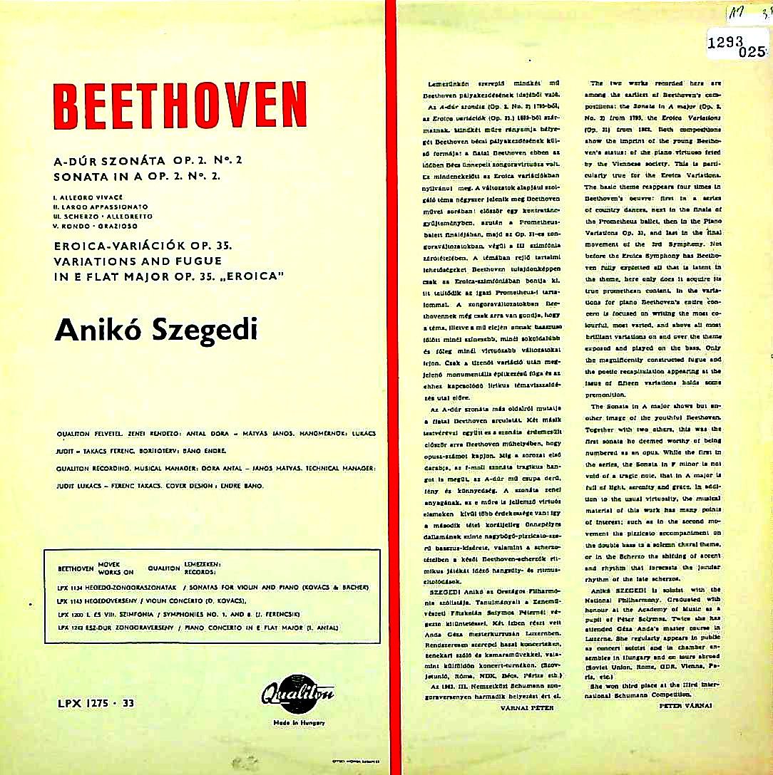 商品コード:1293-025n[QUALITON] A.セゲディ(pf) / ベートーヴェン:Pfソナタ2番, エロイカ変奏曲Op.35
