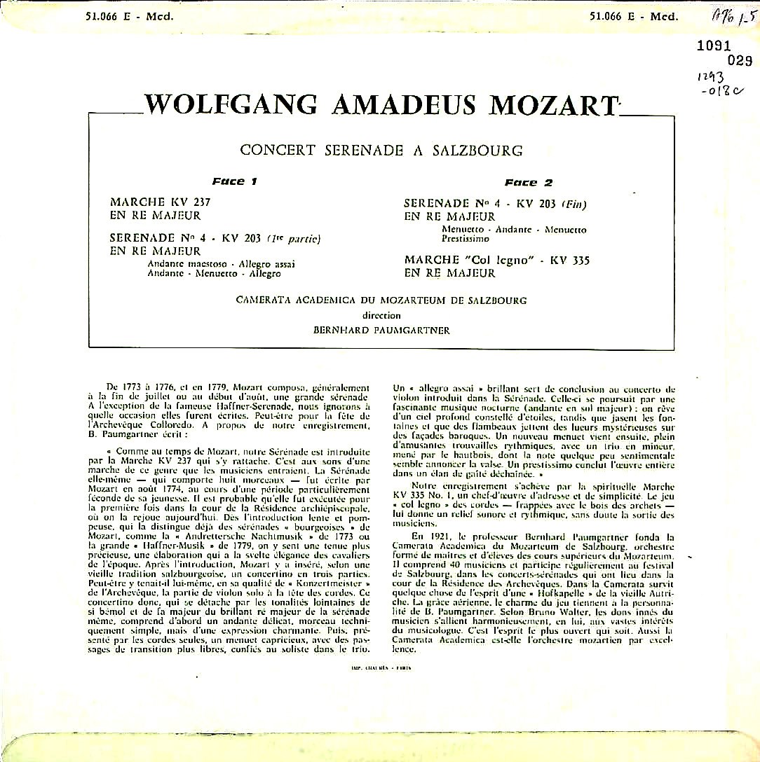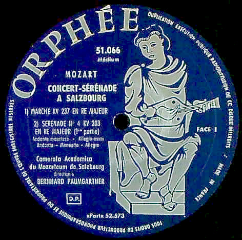 商品コード:1293-018c[Orphée] B.パウムガルトナー指揮ザルツブルク・モーツァルテウム・カメラータ・アカデミカ C.リヒター・シュタイナー(vn) / モーツァルト:セレナーデ4番K.203, 行進曲K.237・K.335