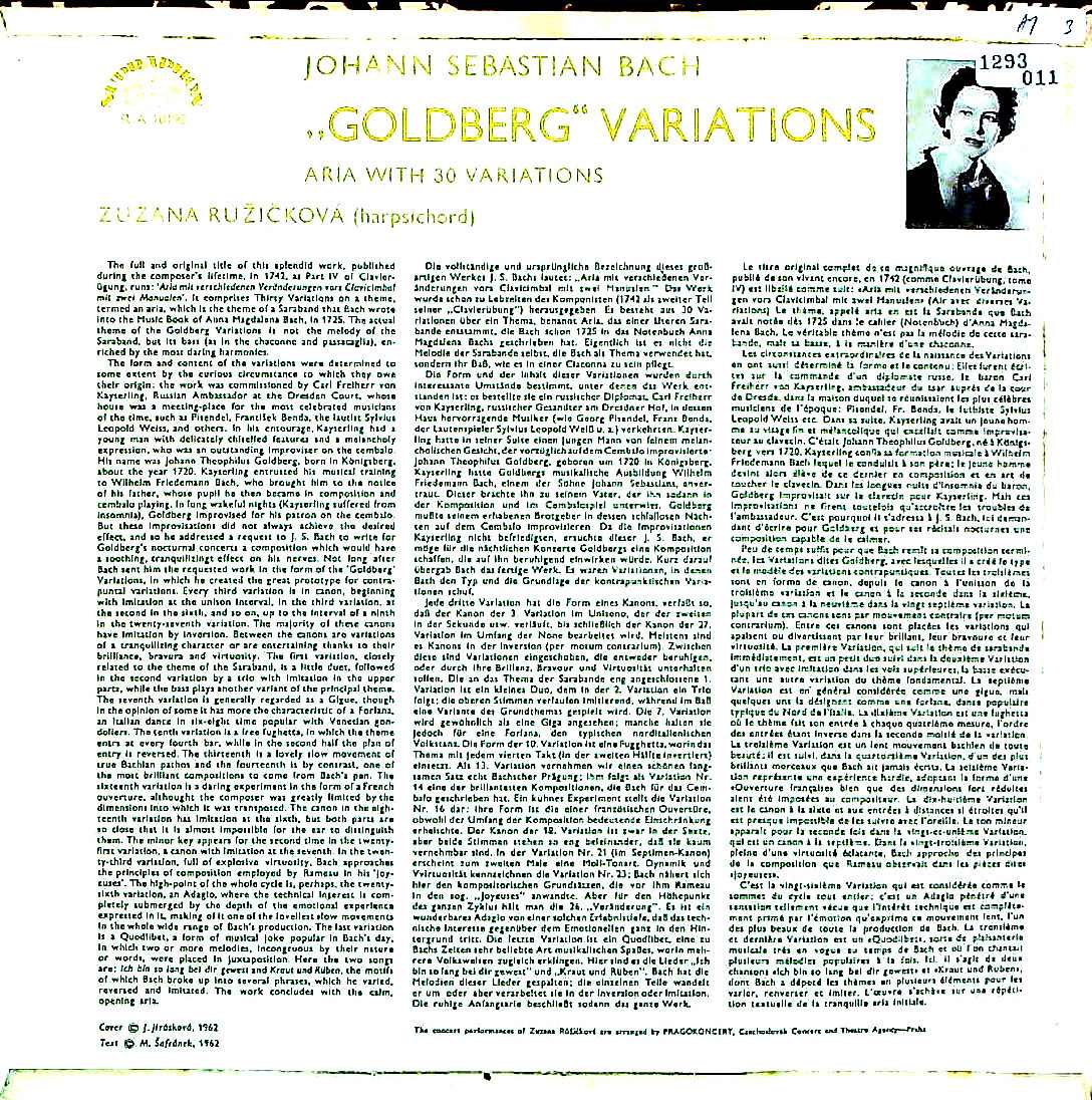 商品コード:1293-011[SUPRAPHON] Z.ルージチコヴァー(cemb) / バッハ:ゴルトベルク変奏曲B.988