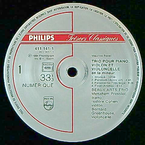 商品コード:REG-2652[欧PHILIPS] ボザール・トリオ / ラヴェル:Pfトリオ, ショーソン:PfトリオOp.3
