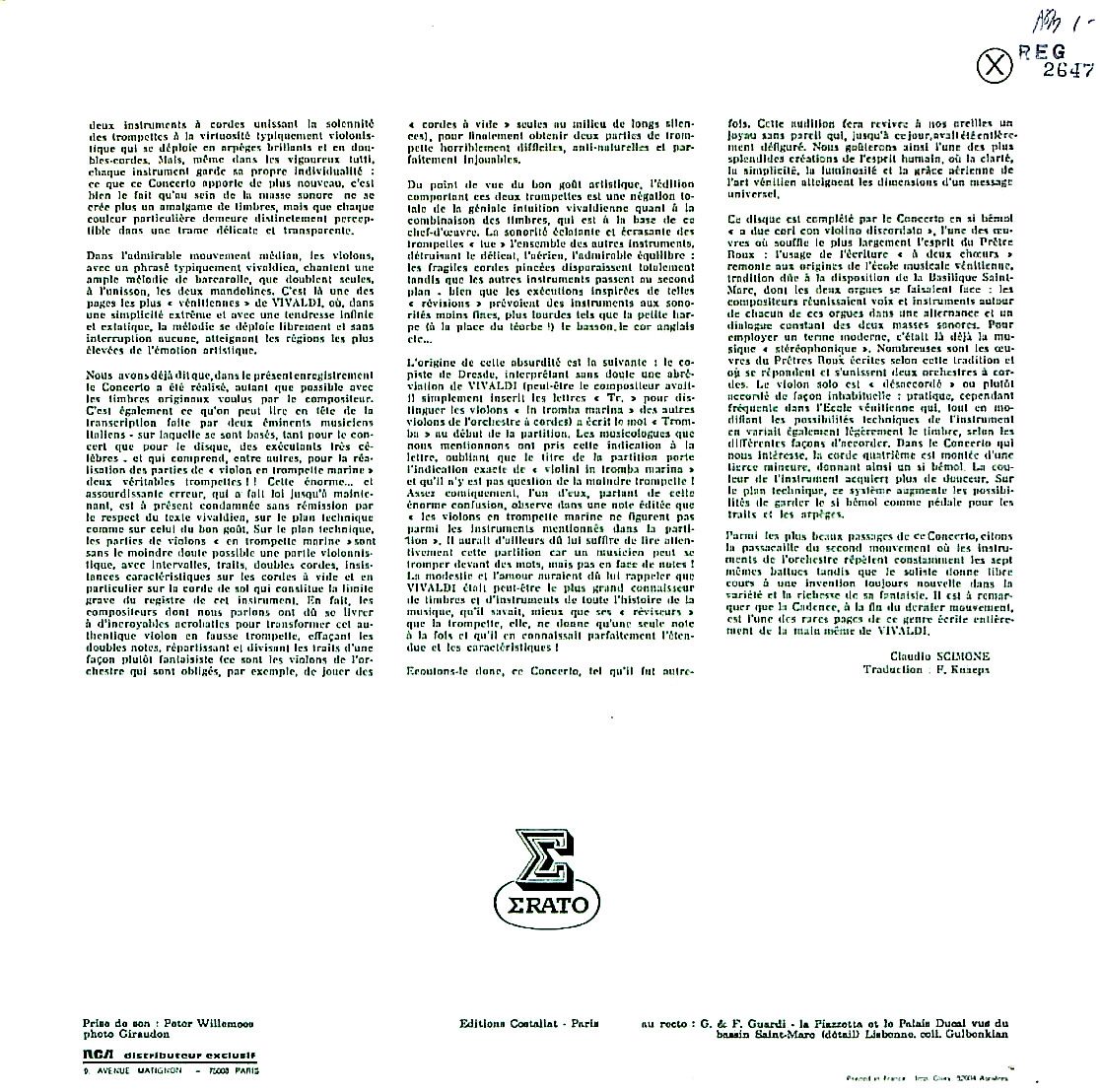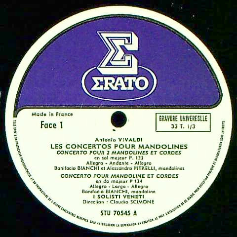 商品コード:REG-2647[仏ERATO] B.ビアンキ A.ピトレリ(mand) P.トーゾ(vn) C.シモーネ指揮イ・ソリスティ・ヴェネティ / ヴィヴァルディ:Mand協奏曲, 他(全4曲)