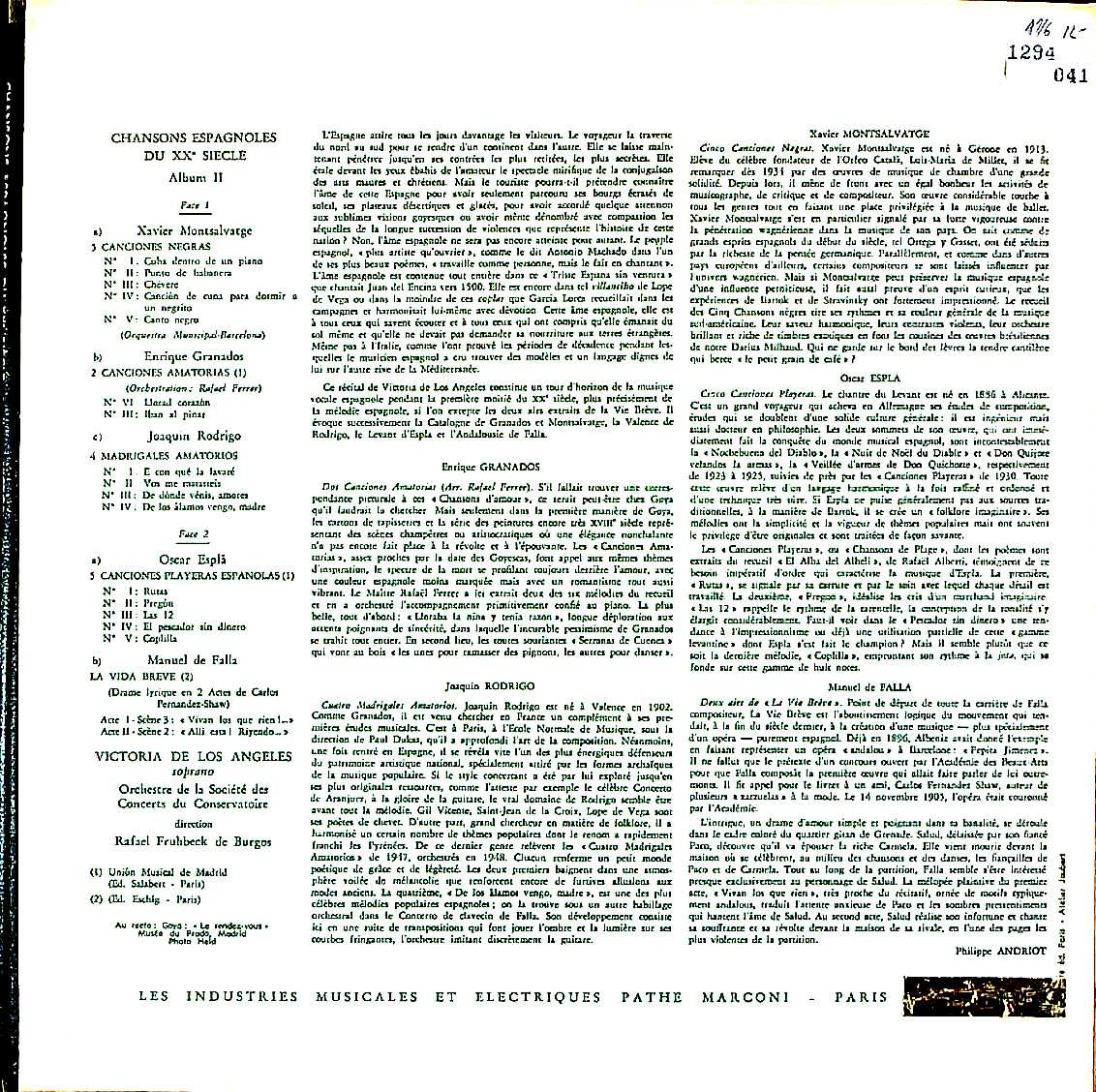 商品コード:1294-041[La Voix De Son Maître] V.d.ロス・アンヘレス(s) R.フリューベック・デ・ブルゴス指揮パリ音楽院o. / 20世紀スペイン歌曲集-2/モンサルバージェ, グラナドス, ロドリーゴ, エスプラ, ファリャ